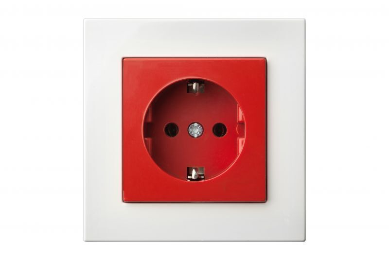 Розетка с Заземлением и Шторками без Винтовой Контакт Красная LIREGUS EPSILON